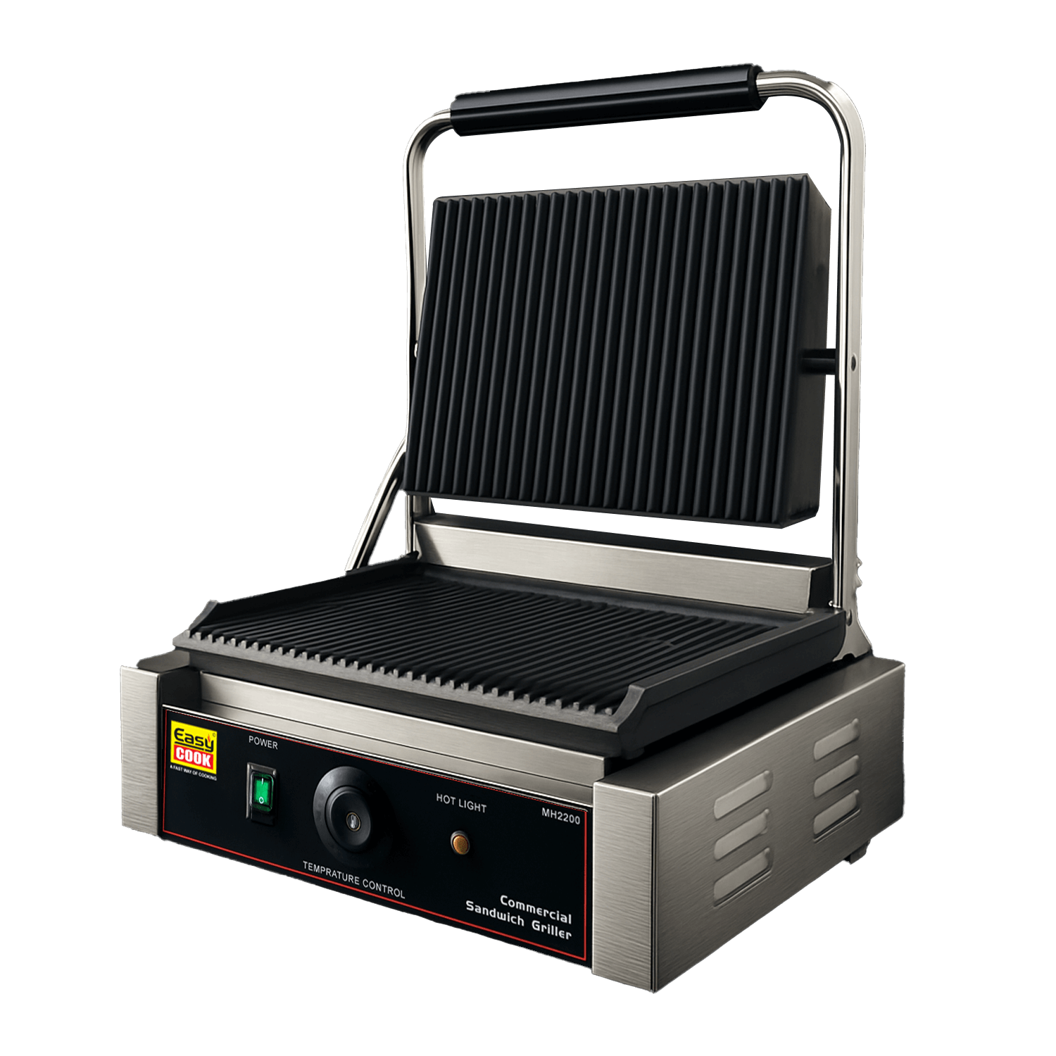 The MH2200 Commercial Sandwich Griller is the ultimate solution for professional kitchens, designed to deliver fast, even grilling with top-notch safety and convenience. Powered by a robust 2200W motor, this electric grill features a fully grooved plate that ensures consistent heat and signature grill marks on every sandwich. The temperature control knob (0–300°C) allows precise cooking for various menu items, while the waterproof ON/OFF switch ensures durability in busy kitchens.